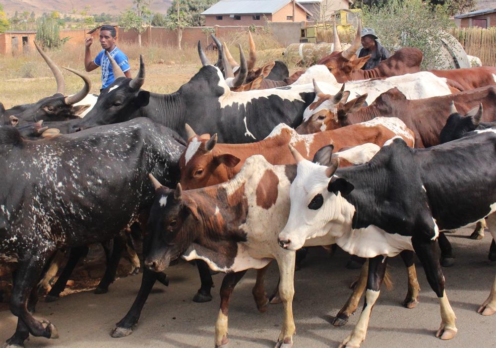 Un autre animal représentatif du pays est le zébu. Ce « bœuf à bosse » est très répandu dans le pays et représente une richesse. Lorsqu’il est vivant, les malgaches le dresse pour qu’il soit un soutien pour le travail des terres. Ensuite, sa chair nourrit la population, sa peau sert à la maroquinerie, les cornes pour des remèdes ou de l’artisanat et certains d’entre eux servent de sacrifices fournis aux Ancêtres.