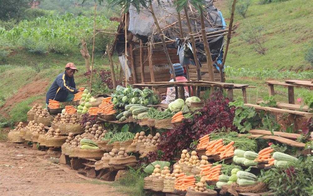 Les légumes disponibles sont nombreux grâce au climat tempéré présent dans une partie du pays. Les pommes de terre, tomates, choux, carottes, haricots, lentilles, pois du Cap, brèdes (feuilles vertes), manioc, … préparés en bouillon, en beignets, cuits à la vapeur ou frits accompagnent le plat principal : le riz. .