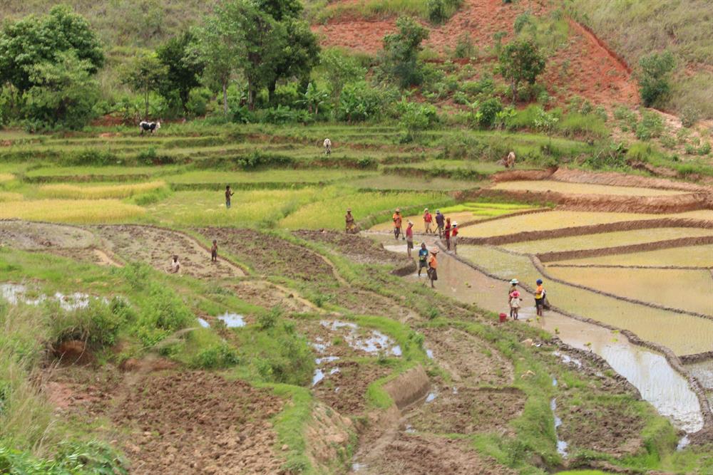 L’aliment de base, parfois l’unique aliment des malgaches, est le riz. Une personne consomme environ 200kg de riz par an. Sa culture est pratiquée dans tout l’île, à l’exception de l’extrême sud ; dur travail minutieusement réparti entre les hommes, les femmes et les zébus. Suivant les possibilités économiques des habitants, ce plat est accompagné de légumes, de poissons ou crustacés ou de viandes.